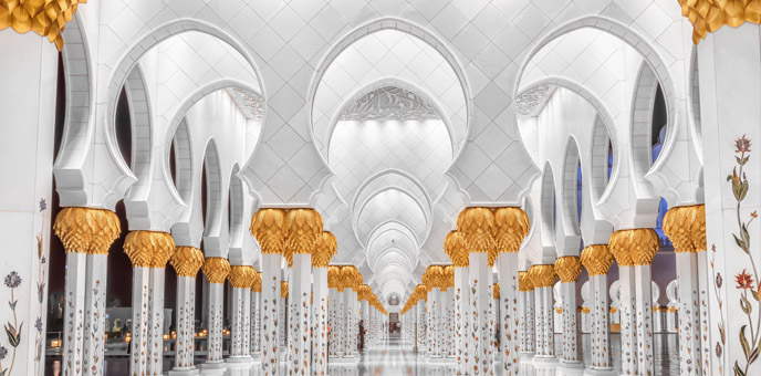 • Visit Sheikh Zayed Mosque, with its shimmering white domes and minarets