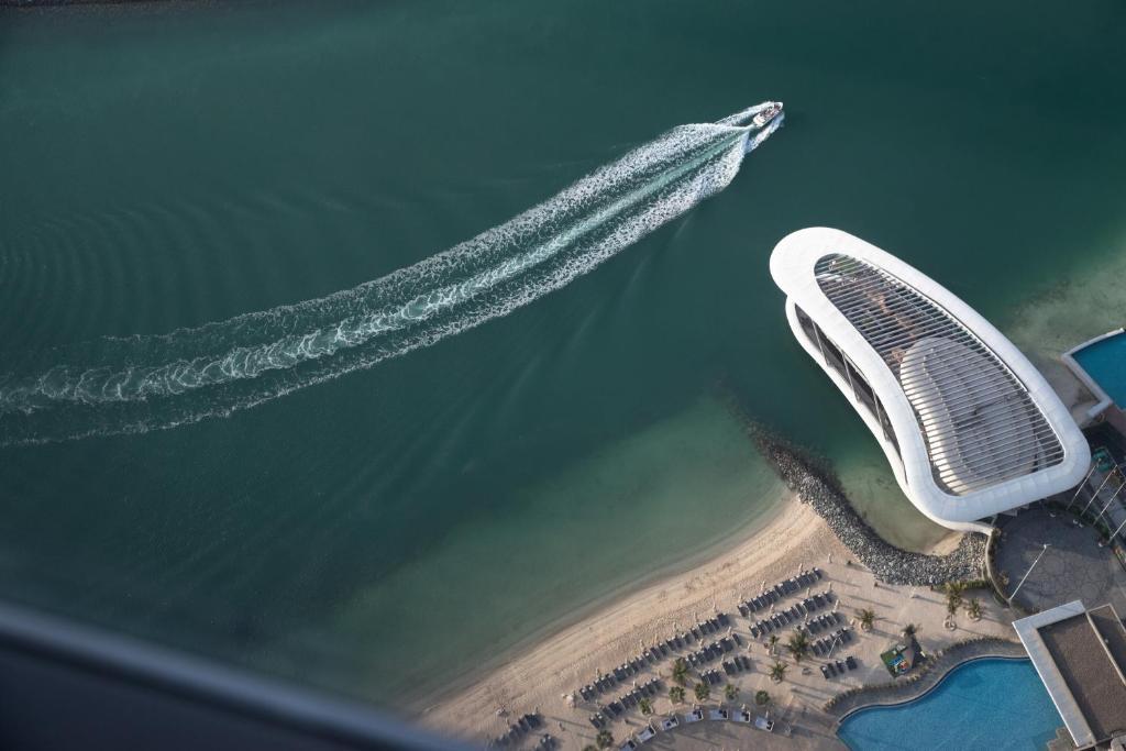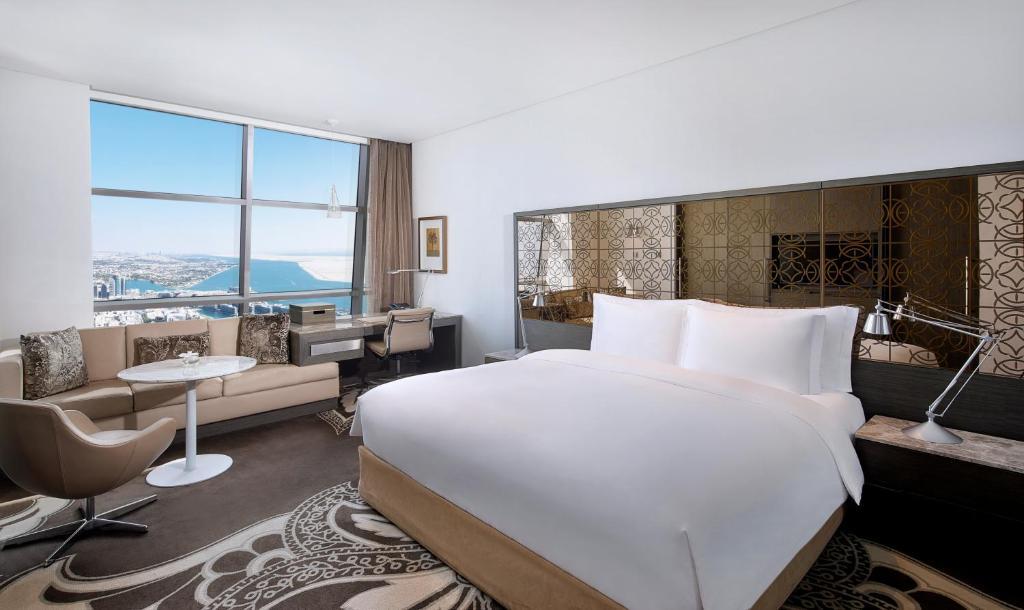 There are 382 rooms and suites and 199 serviced apartments. Deluxe standard rooms offer cityscape or sea views. All have a sitting area and sizeable work space, along with remote-controlled lighting and curtains. The Grand Deluxe room is bigger than the Standard size and higher up, while the Club category offers access to complimentary meals and snacks in the lounge. The Etihad and Royal suites are the superior choices, with generous floor space, separate living areas, butler service and personalised check-in.