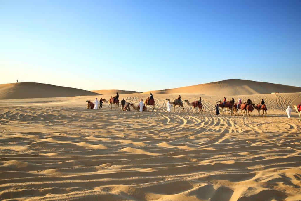 Once you had fun with your sand board, continue your journey to your next location of this Abu Dhabi evening desert safari adventure –where you can meet the ships of the desert, Camels. Admire the beauty of these majestic creatures and pet them before you get on one of them to enjoy a camel ride across the desert like a real Bedouin.