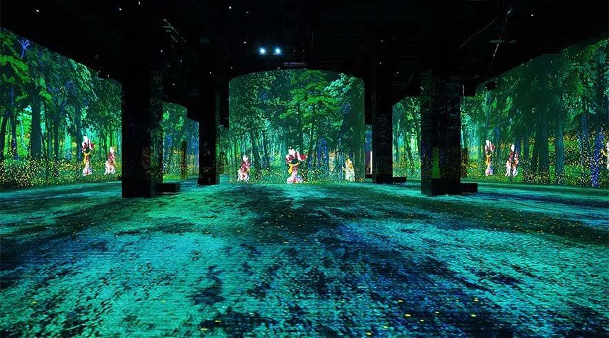 The major draw is the exhibition themed around Vincent Van Gogh’s artworks. This allows you to take in some of his famous masterpieces such as Potato Eaters, Sunflowers etc in their digital format. The second exhibition is Dreamed Japan where you will enter a fantastical world with the animations of lanterns, seascapes and samurai warriors – all depicting the world of Japan in the 19th century. As for its third exhibition – Verse, it journeys you to the cosmos and infinity through the stunning creations by Thomas Vanz.