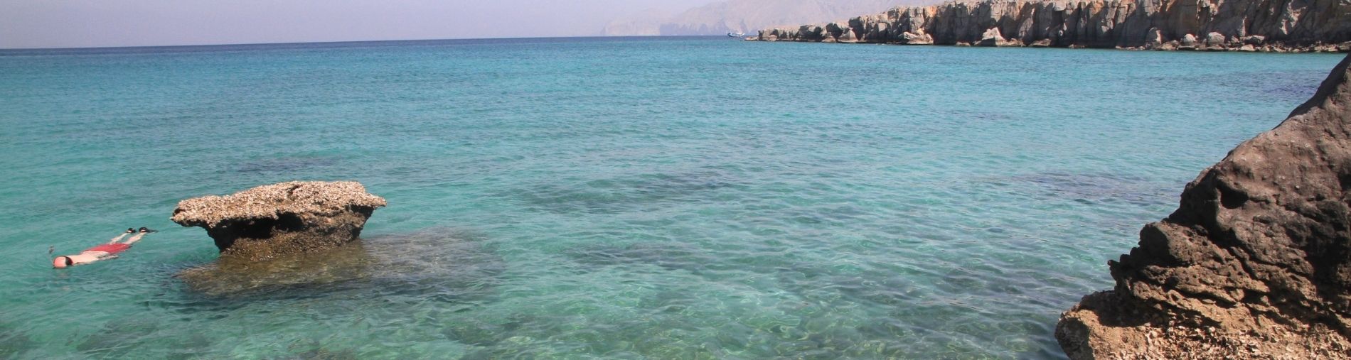 Arrive at the Khasab harbor and board the traditional Omani dhow for the Full day cruise into the spectacular, scenic and tranquil fiord, the khor as Shimm and the longest fiords in the Musandam peninsula. Observe the coastal villages as we cruise along and there’s a very good possibility to sight the playful dolphins and many exotic marine creatures. We anchor at the famous Telegraph Island, which was a repeatt station built in 1864 by the Vritish to connect Bombay (India) with mainland Britain by an underwater and overland telegraphic cable passing via Basra in Iraq and Turkey. Enjoy swimming and snorkeling at the Telegraph Island in the pristine and calm water of the fiord. Lunch and refreshments are served onboard. Snorkeling equipments and towels will be provided on the dhow.